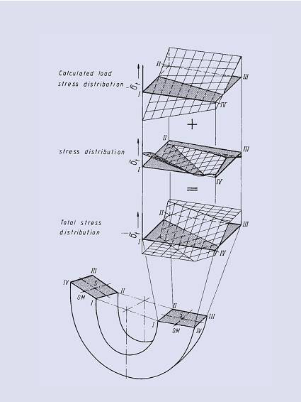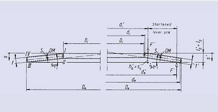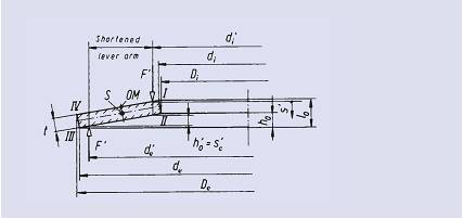 DIN2093標(biāo)準(zhǔn)詳細(xì)規(guī)定了盤片厚度由t減到t’的情況。A、B系列彈簧t’與t之間的平均厚度減薄比為0.938,C系列彈簧t’與t之間的平均厚度比為0.995。由于支撐面的存在,已不必對橫截面邊緣I…IV角點(diǎn)的載荷應(yīng)力進(jìn)行計(jì)算。因此計(jì)算應(yīng)力或多或少高于用更為精確的方法計(jì)算的角部實(shí)際應(yīng)力。由于這些數(shù)值只是一些名義值,因此偏差并不重要。