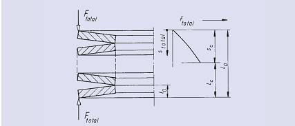 由n片單彈簧平行放置組成的碟形彈簧組,其變形量恒定載荷則是單片彈簧計(jì)算載荷的n倍。如下圖